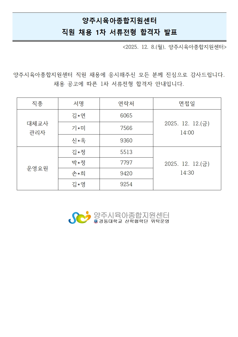 [ü¿ë] 2026³â ¼¾ÅÍ ¿î¿µ¿ä¿ø, ´ëü±³»ç °ü¸®ÀÚ Ã¤¿ë 1Â÷ ¼·ùÀüÇü ÇÕ°ÝÀÚ ¹ßÇ¥