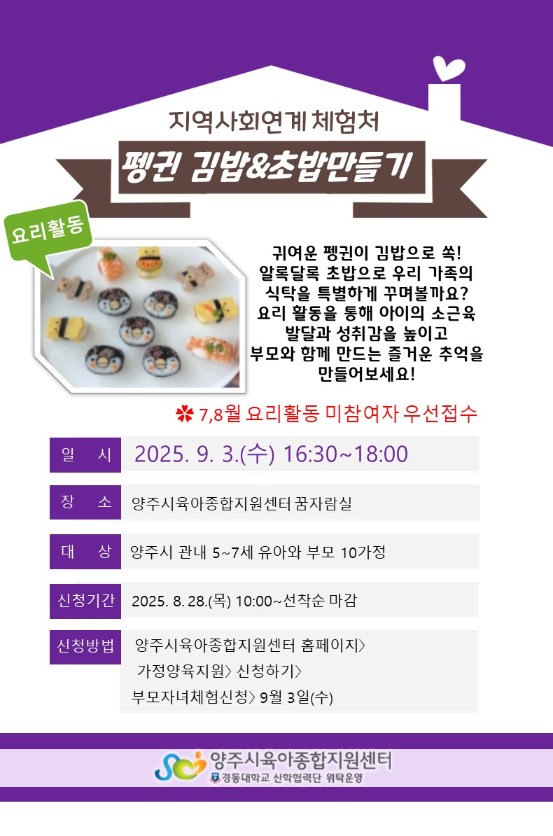 9¿ù üÇè(5~7¼¼)¿ä¸®È°µ¿-Æë±Ï±è¹ä¸¸µé±â(7,8¿ù ¿ä¸®È°µ¿ ¹ÌÂü¿©ÀÚ ¿ì¼±Á¢¼ö) | |||
