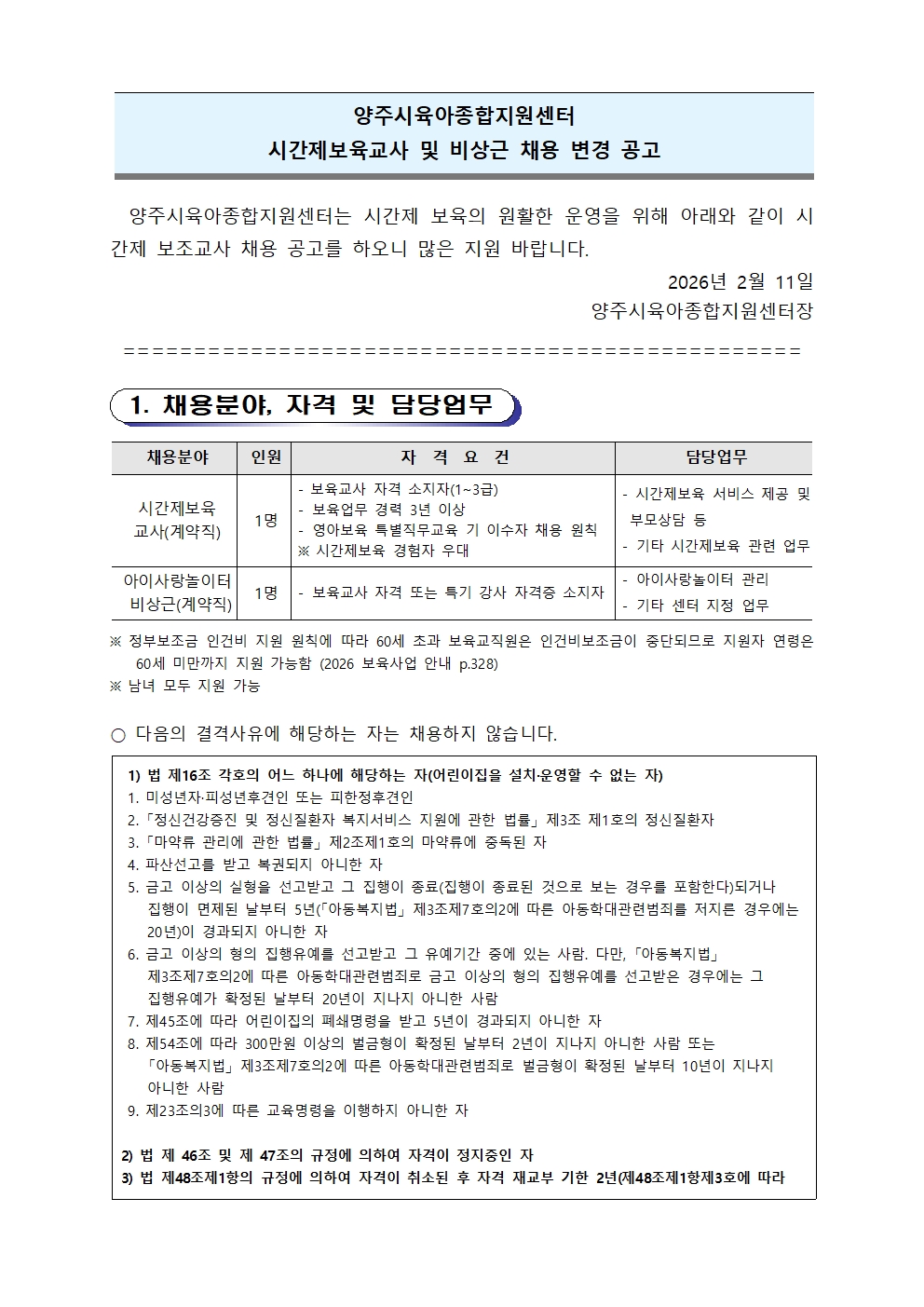 | [ä¿ë] ½Ã°£Á¦º¸À°±³»ç, ¾ÆÀÌ»ç¶û³îÀÌÅÍ ºñ»ó±Ù ä¿ëÀÏÁ¤ º¯°æ | |||||