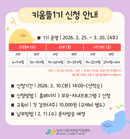 2026 ¾çÁÖ½ÃÀ°¾ÆÁ¾ÇÕÁö¿ø¼¾ÅÍ »ç¾÷ ¼³¸íȸ ¹× ¾î¸°ÀÌÁý Àλç³ë¹«°ü¸®±³À°