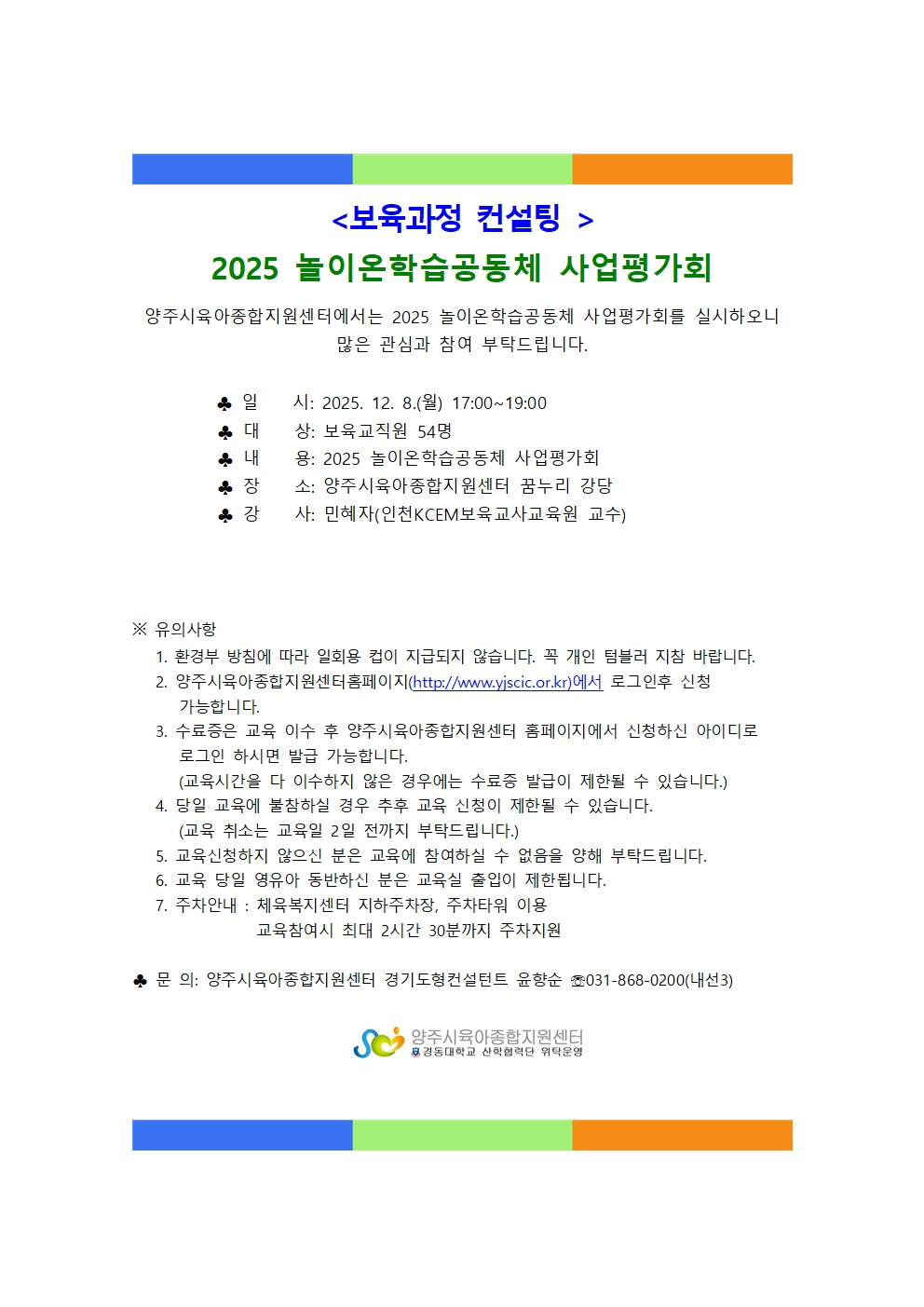 | <º¸À°°úÁ¤ ÄÁ¼³ÆÃ > 2025 ³îÀÌ¿ÂÇнÀ°øµ¿Ã¼ »ç¾÷Æò°¡È¸ | |||