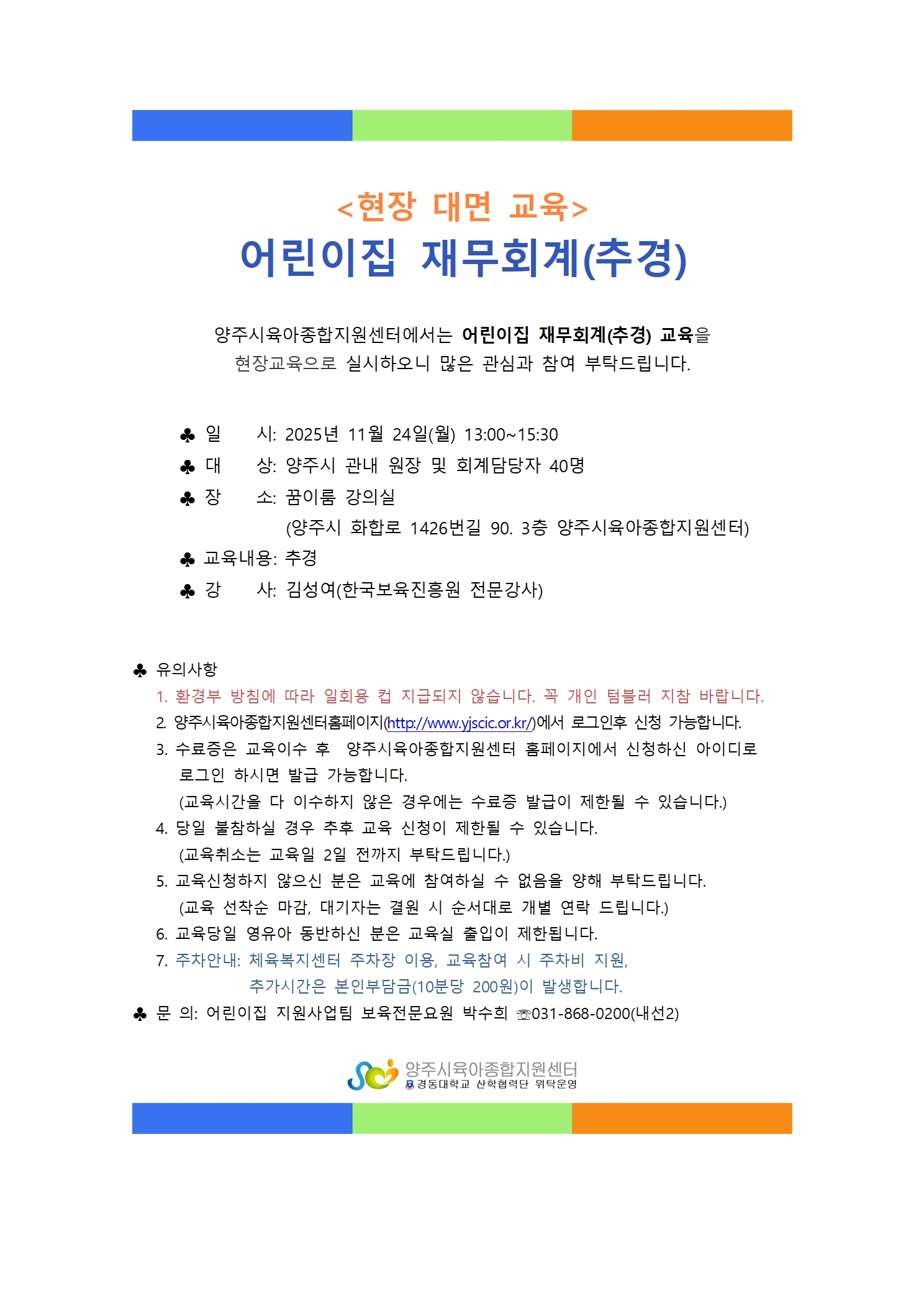 | Á¢¼ö´ë»ó | ¿øÀå, º¸À°±³»ç, ÁÖÀÓ±³»ç | Á¤¿ø | 50¸í (½Åû: 50) |