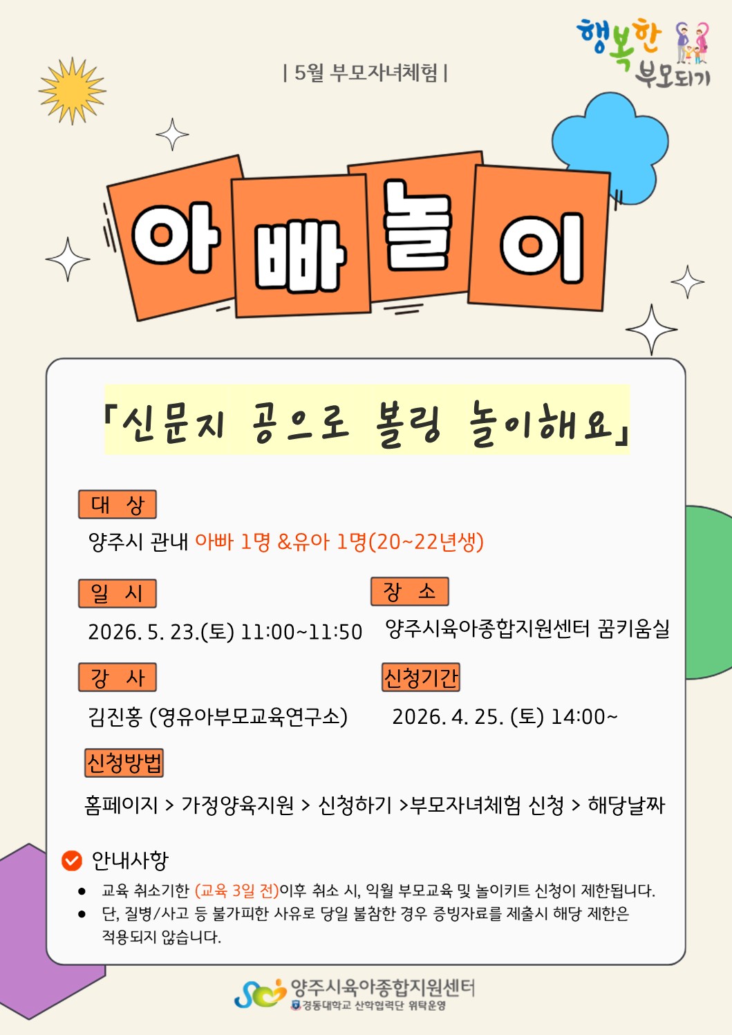| [¾Æºü¶û³îÀÚ] ½Å¹®Áö °øÀ¸·Î º¼¸µ ³îÀÌÇØ¿ä (20~22³â»ý À¯¾Æ&¾Æºü) | |||